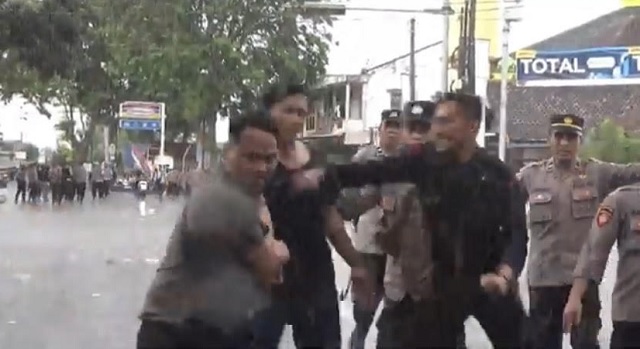 Sementara, Dwi yang sudah mengamankan diri lebih dari 300 meter dari lokasi, tiba-tiba didatangi aparat saat sweeping. Polisi menuduhnya melempar batu, tapi Dwi tidak sempat membela diri. Ia langsung diseret ke dalam kompleks DPRD, di mana sejumlah polisi menunggu. Dwi ditonjok, lalu dimasukkan dalam mobil tahanan bersama demonstran lain.