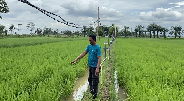 Kesunyian di bendang sore itu hanya dipecah oleh kesibukan Sukarlin. Ia sedang menyambungkan saluran air dari kolam lele agar mengalir ke sawahnya. Pasokan air itu harus tetap stabil karena Sukarlin menempatkan makhluk hidup lain di sela-sela padinya: ikan nila. Ia menjaga agar keduanya bisa tumbuh bersamaan.